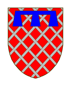 De gueules fretté d’argent de six pièces, au lambel à trois pendants d’azur.