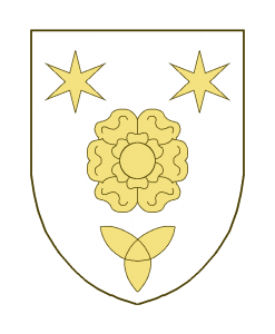Une fleur à six feuilles en coeur, accompagnée en chef de deux étoiles à six rais, en pointe d’un meuble?