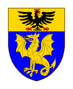 d’azur à un dragon ailé d’or: au chef du même, chargé d’une aigle de sable, la tête tournée a dextre, becquée, membrée et couronnée de gueules.