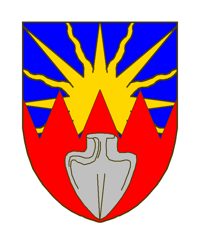 Coupé-émanché d’azur au soleil levant d’or mouvant de la partition, et de gueules au soc de charrue d’argent mis en pal.