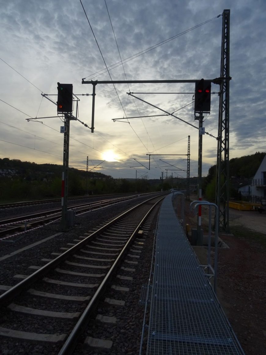 Die ganze Woche hatte ich jetzt Probleme den Zug zu erwischen, denn es mussten etwa drei Minuten mehr eingerechnet werden, weil ich noch durch die Unterführung musste. Da sieht der Schaffner auch keine verspäteten Passagiere angerannt kommen. Der Grund: entlang eines Teiles der Gleise wurde noch eine niedrige Gabionenenmauer errichtet, die dem Schallschutz dienen soll.