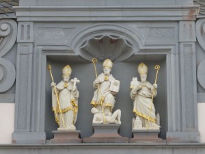 Die heiligen Bischöfe Eucharius, Valerius, Maternus; die ersten drei Trierer Bischöfe (Statuen um 1717)