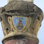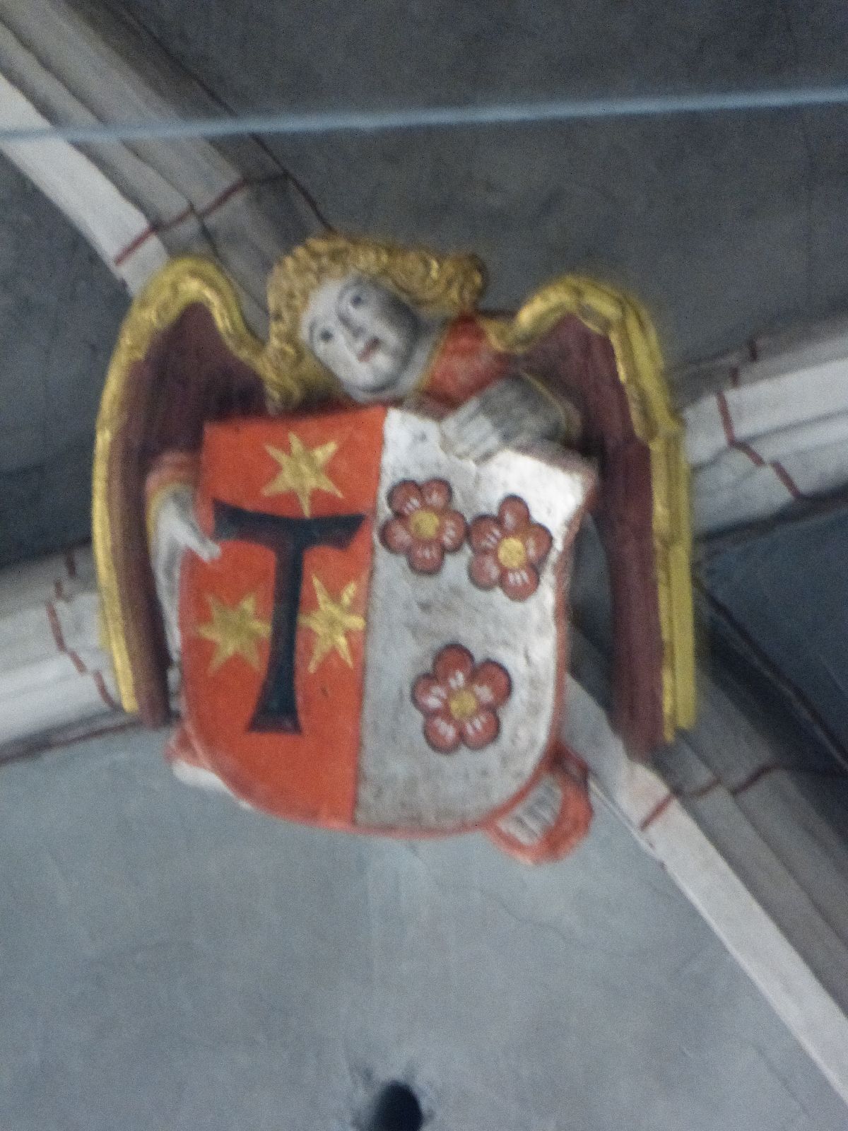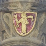 Ehe- oder Allianzwappen der reichen Trierer Kaufmannswitwe Adelheid von Zerf, geborenen von Besselich. Sie spendet 1507 Geld für den Bau des Turms der St. Gangolfskirche (daher diese Wappen auch am Turm der Trierer Gangolfskirche zum Markt hin). So wird sie wohl auch Geld für den Mattheiser Gewölbebau gespendet haben.