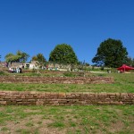 Stieg man dann die Treppe etwas weiter rauf, war Platz für die Musikkapelle des örtlichen Musikvereines. Hier hatte man auch einen nachempfundenen römischen Streitwagen aufgestellt, von dem aus der Bürgermeister und andere ihre Ansprachen halten konnten, etwa zur Überleitung für die Führung durch die neue Anlage, zu der Dr. Georg Breitner, vom Landesmuseum und halt Silke Öffling, die ausführende Architektin dann vortrugen. Das war der Teil, für den ich mich am meisten interessierte; diese Führung wurde zu 3 verschiedenen Zeiten angeboten.