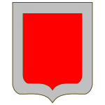 118. Fascé contre-fascé d’or et de gueules de six pièces.