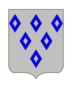 66. Ecartelé : au 1 et 4, d’argent à la croix de Lorraine de sable ; au 2 et 3, d’or à la bande d’azur.