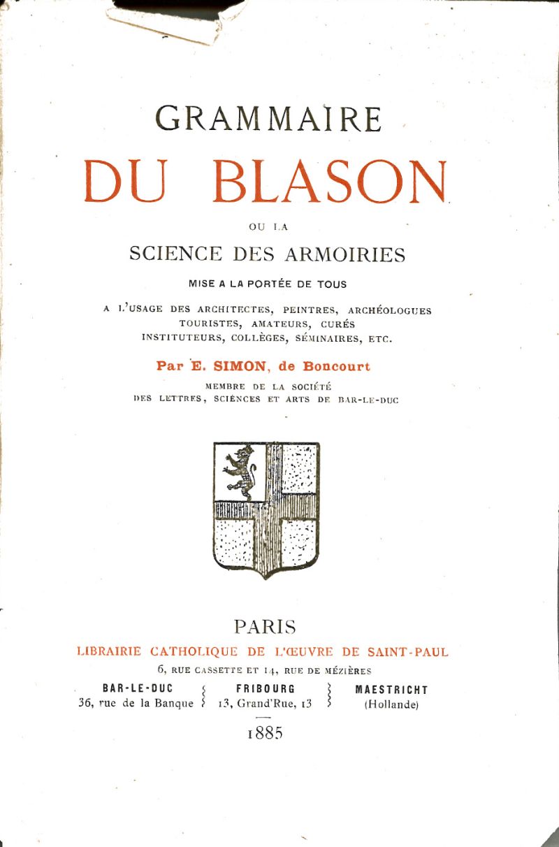 Deckblatt der Grammaire du blason Sizes: 150 × 150 / 198 × 300 / 620 × 941 / 800 × 1212 Deckblatt der Grammaire du blason