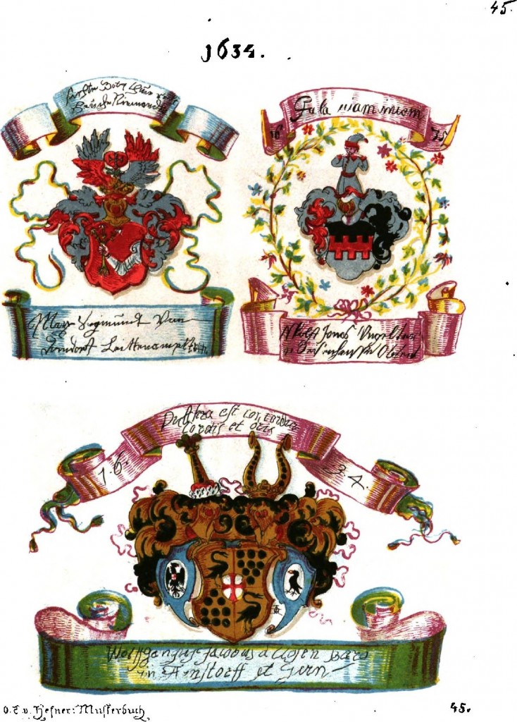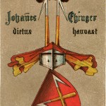 Möglicherweise finden Sie etwas in seinen “Wappenbüchern”. Die dürften auf googlebooks zu finden sein.