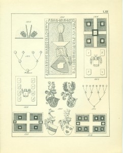 Ich komme nun zu derjenigen Abteilung des Wappengebrauches, welche man unter dem allgemeinen Begriffe „zur Erinnerung“ subsummieren kann. Dabei ist nicht ausgeschlossen, dass in einzelnen Fällen mit der Erinnerung an Gewesenes zugleich ein rechtlicher Anspruch für die Gegenwart verbunden sein könne. Ich übergehe hier die nur dekorativ als Erinnerungsgegenstände angebrachten Wappen an öffentlichen Gebäuden, wie sie z.B. der Wappenturm (turris insignium) in Innsbruck (Herrgott, Monum. Domus Austr. I. tab. 15) zeigte, oder die Seitentürme des Isartors in München mit den Wappen der Edelleute, welche in der Ampfingerschlacht auf Seite K. Ludwigs kämpften, ingleichen das Wappenfries im großen Rathaussaal dahier, welches die (in neuester Zeit leider schauerlich restaurierten) Schilde aller Fürsten des römischen Reichs und des altbayerischen Hofadels enthält, und nenne sogleich die Grabsteine oder Grabdenkmäler zu Ehren und zum Andenken der Verstorbenen als die häufigst vorkommenden Beispiele dieser Wappen-Anwendung.