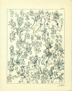 Tafel LXIV. ein Löwen-Kabinet. Sämtliche Figuren 1824—1868 sind nach Originalen aller Länder und Zeiten und zwar gewissenhaft gepaust. Der Leser wird, wenn er überhaupt sich in Wappenbüchern bereits orientiert, bekannte Gestalten unter diesen Löwen finden, und gewiss mir beistimmen, dass ich weit entfernt war, irgendetwas zu karikieren.