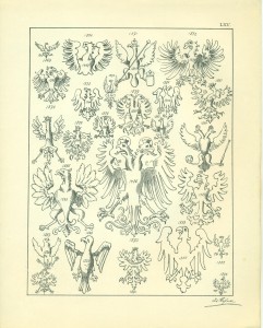 Tafel LXV. ein Adler-Kabinet J. 1869—1893. Ebenfalls aus denselben Quellen. — Die Bestimmung des Alters und der Heimat aller dieser Kabinets-Tiere dürfte für den praktischen Heraldiker nicht unfördersam sein.