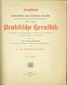 Bem. DE: Dies ist der zweite Teil, von Otto Titan von Hefners Handbuch der theoretischen und praktischen Heraldik, dessen erster Teil “Theoretische Heraldik” schon 1861 erschien.
