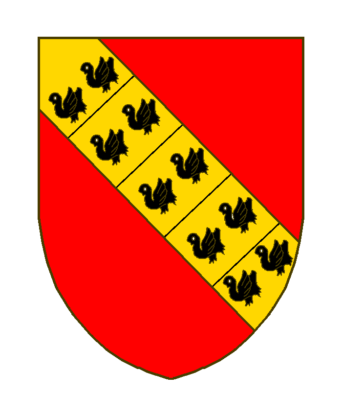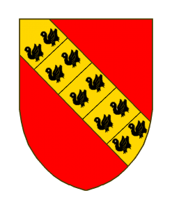 Maesen de Nombreff (Limbourg) Sizes: 150 × 150 / 247 × 300 / 700 × 850 van der Maesen de Nombreff Provenance: Limbourg Armes: De gueules à la bande d’or, divisée en cinq compartiments, au moyen da traits de sable, chaque compartiment chargé de deux merlettes accostées de sable. Quelle: Armorial de Rietstap, Planche 2 Wappen Nummer 13