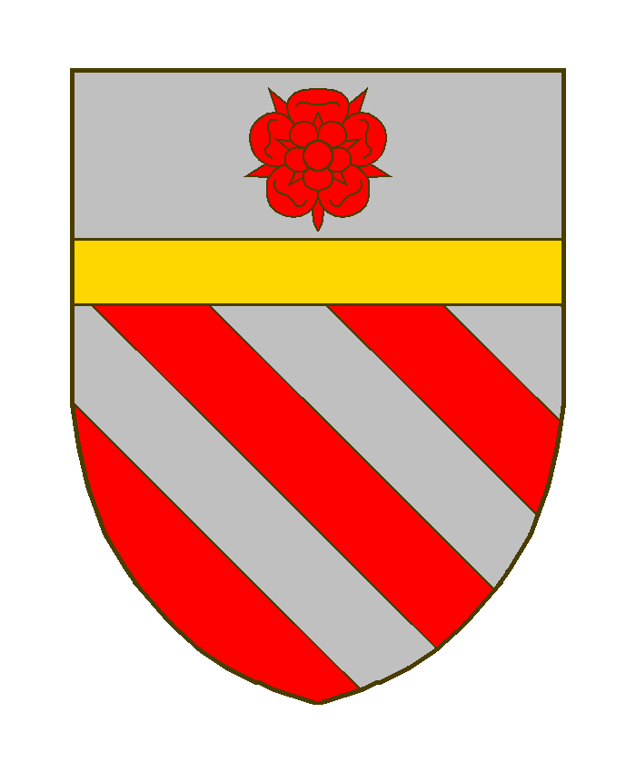 Jouvenel des Crains (Champagne, Languedoc) Sizes: 150 × 150 / 247 × 300 / 700 × 850 Jouvenel des Crains Provenance: Champagne, Languedoc Armes: Bandé d’argent et de gueules, de six pièces, au chef d’argent, chargé d’une rose de gueules et soutenu d’une divise d’or. Quelle: Armorial de Rietstap, Planche 2 Wappen Nummer 19