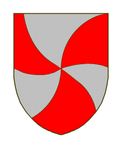 Mal-gironné de six pièces gironnantes de gueules et d’argent.