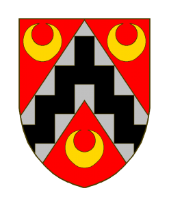 De gueules au chevron d’argent, chargé d’un chevron vivré de sable et accoampagné de trois croissants d’or.