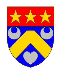 D’azur au chevron écimé d’or, accompagné en chef de deux croissants d’argent et en pointe d’un coeur du même, an chef de gueules, chargé de trois étoiles d’or.