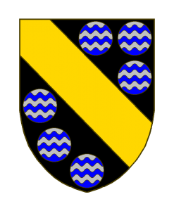 Stourton lord Stourton (Yorkshire) Sizes: 150 × 150 / 247 × 300 / 700 × 850 Stourton lord Stourton Provenance: Yorkshire Armes: De sable à la bande d’or, accompagnée de six rondelles, rangées en orle, chacune fascée–ondée d’argent et d’azur de six pièces. Quelle: Armorial de Rietstap, Planche 4 Wappen Nummer 23