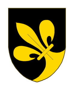 De sable à une fleur-de-lis d’or, posée en bande, mouvant d’une enchaussure senestre du même émail.
