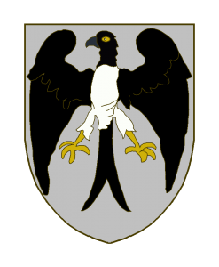 D’argent à un oiseau de paradis au naturel, le vol ouvert et abaissé, les ailes et la queue de sable, posé dans l’attitude de l’aigle héraldique.