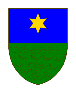 Coupé, en chef d’azur à une étoile à six rais d’or (ou d’argent) placée au point du chef, en pointe une mer agitée de sinople.