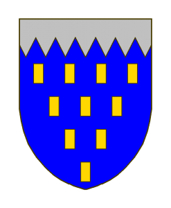 D’azur à dix billettes d’or posées 4, 3, 2, 1, au chef emmanché d’argent.