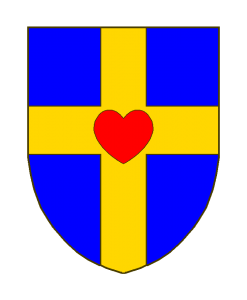 D’azur à la croix d’or, chargé d’un coeur de gueules.