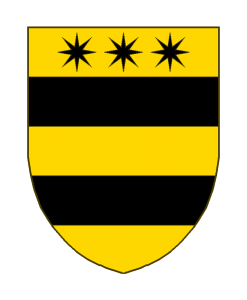 D’or à deux fasces de sable (ou d’azur) en chef brisé de trois étoiles à six rais du même