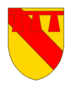 D’or à la bande de gueules un lambel à trois pendants du même brochant en chef