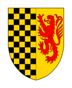 Parti au I échiqueté d’or et de sable, au II d’or au lion de gueules.