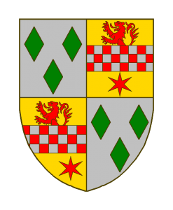 Écartelé: aux I et IV d’argent à trois losanges de sinople, aux II et III d’or à la fasce échiquetée d’argent et de gueules de trois tires,la fasce surmontée d’un lion issant de gueules, et accompagnée en pointe d’une étoile de gueules.