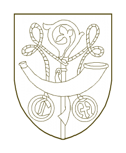 Un huchet en fasce brochant sur une crosse posée en pal ornée de son voile et de deux cordons terminés chacun par une boucle dans laquelle on trouve à dextre la lettre C gothique et à senestre la lettre M gothique