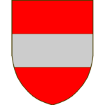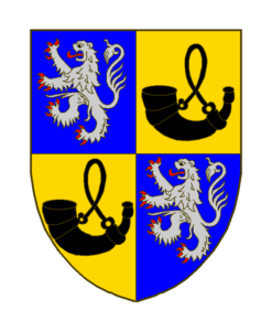 Ecartelé aux 1 et 4 d’azur au lion d’argent, armé et lampassé de gueules, aux 2 et 3 d’or à un huchet de sable, l’embouchure tournée à senestre.