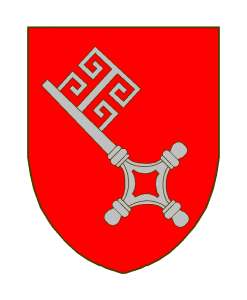 De gueules à la clé gothique d’argent, posée en bande. Le panneton en haut est composé de quatre pièces.