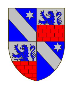 Écartelé: aux 1 et 4 d’azur à la bande d’argent, surmontée d’une étoile à six rais du même, aux 3 et 4 coupé d’argent au lion issant d’azur, et de gueules maçonné de sable.