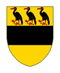 D’or à la fasce de sable, accompagnée en chef de trois cormorans du même, becqués et membrés de gueules, rangés en chef.