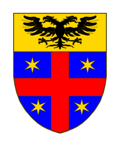D’azur à la croix cousue de gueules cantonnée de quatre étoiles à six rais d’or, au chef du même chargé d’une aigle éployée de sable.