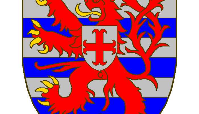 Burelé d’argent et d’azur au lion de gueules, couronné, armé et lampassé d’or, la queue fourchue et passée en sautoir, l’épaule du lion chargée d’un écusson d’argent à la croix ancrée de gueules.