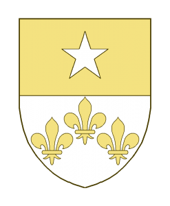 Coupé, en chef une étoile à cinq rais, en pointe trois fleurs de lis mal ordonnées.