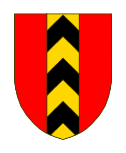 De gueules au pal d’or chargé de trois chevronsde sable.