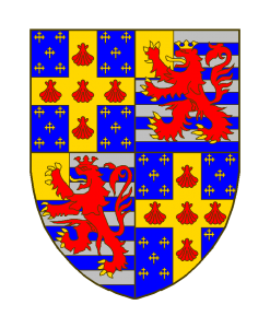 Écartelé au 1 et 4 comme ci-dessus (d’azur à la croix d’or chargées de 5 coquilles de gueules, cantonnée de 20 croisettes recroisettées, au pied fiché d’or), au 2 et 3 burelé d’argent et d’azur au franc-quartier d’or, au lion de gueules, brochant (qui est de Luxembourg-Houffalise).