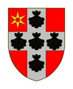 De gueules à la croix d’argent, brisait de 5 coquilles de sable sur la croix et une molette d’or au premier quartier