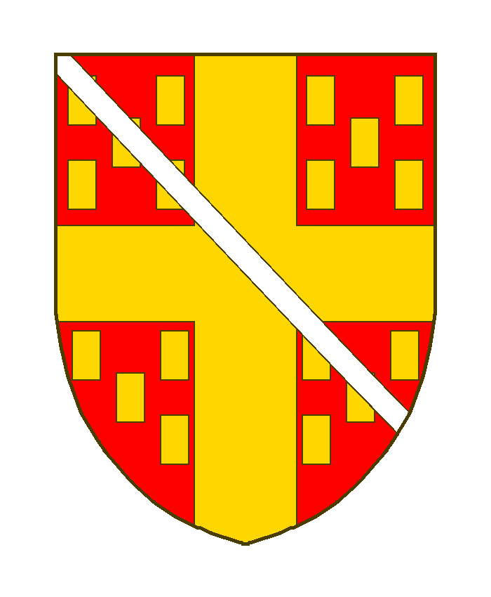 aux armes d’Autel (de gueules à la croix d’or accompagnée de 20 billettes du même, 5 par quartier, posées en sautoir (ou 18 billettes 5 aux quartiers du chef, 4 aux quartiers de la pointe).) un filet en bande.Sources du Dr. Loutsch:
