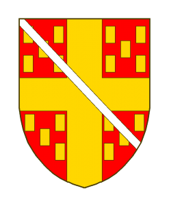 aux armes d’Autel (de gueules à la croix d’or accompagnée de 20 billettes du même, 5 par quartier, posées en sautoir (ou 18 billettes 5 aux quartiers du chef, 4 aux quartiers de la pointe).) un filet en bande.Sources du Dr. Loutsch: