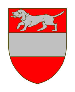 De gueules à la fasce d’argent surmontée d’un chien basset du même.