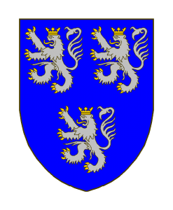 D’azur à 3 lions d’argent armés, lampassés et couronnés d’or.
