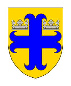 D’or à la croix ancrée d’azur accostée en chef de deux couronnes d’argent.