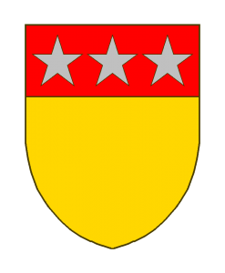 D’or au chef de gueules chargé de trois étoiles d’argent.