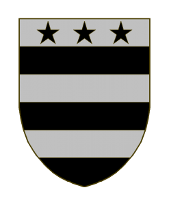 fascé d’argent et de sable (ou d’argent à trois fasces de sable) la première chargé de trois étoiles de sable.