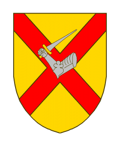 D’or au sautoir de gueules, au dextrochère armé et ganté d’argent, tenant une épée du même garnie d’or, brochant.